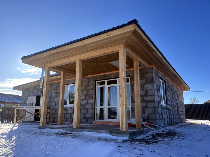 Тут также было огромное количество вопросов, типа где тамбур? Он внутри дома! Можно было крыльцо обшить, но это затраты, которые можно понести позже, если первая зимовка покаже не комфортным работу текущего тамбура.