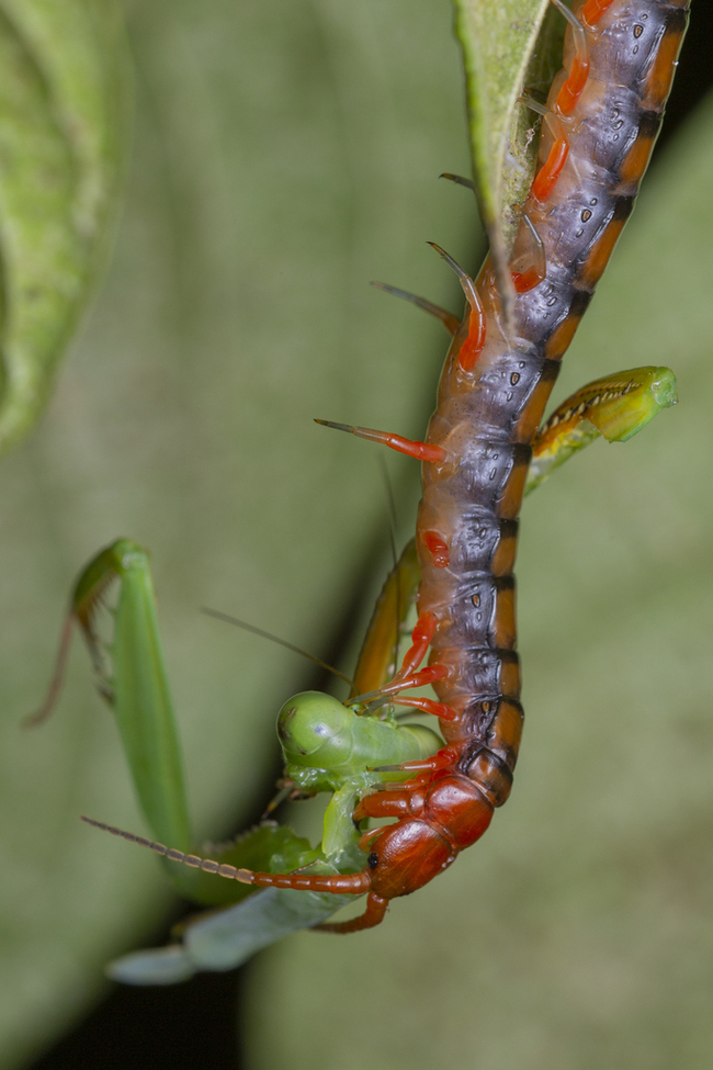 "Утренняя дойка" многоножечки рода Thereuopoda - тропического родича нашей мухоловочки. Яд многоножек отличается крайне сложным составом и уникальными свойствами, за что очень ценится в медицине, фармакологии, токсикологии, биохимии и прочей важной научной хуйне.
