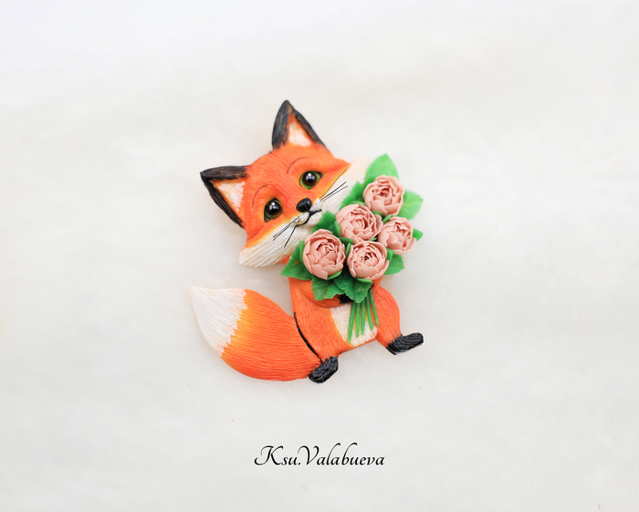 Одни из самых популярных брошек, это лисички с пионами. Все слеплено вручную, покрыто лаком. Сзади специальная фурнитура булавочка. Посередине брошь Лисичка с сиренью, которая красиво переливается перламутром. Они очень легкие🥰