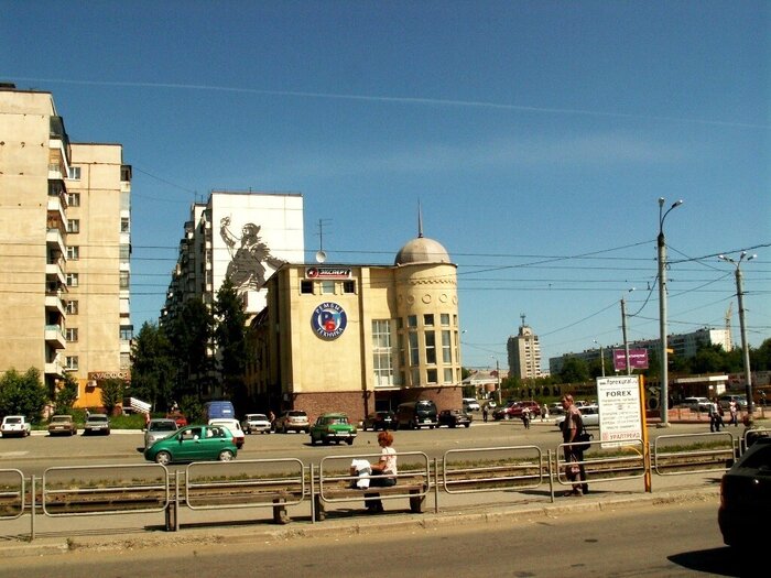 Еще одно 2011 году, но уже с точной датировкой - 11 августа. На парковке, где на фото стоит черная Ауди, вскоре появится торговый павильон.