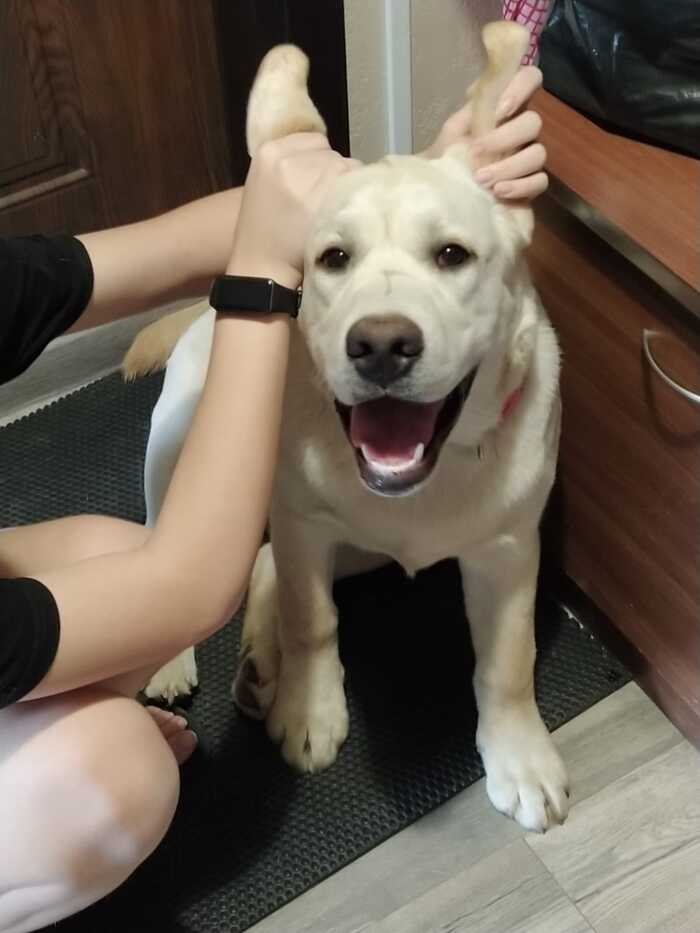 Часто собак учат этой команде. Не то чтобы она была очень полезна в быту, но помогает сконцентрировать внимание собаки на выполнении команд. С Руной я с большим трудом учила эту команду. Никак она не могла сообразить, что я от нее хочу. В глазах читалось "ну если тебе нужна моя лапа, то возьми сама". Искала моменты, когда она сама захочет поставить свою лапу мне на руку. И как только она поняла, что ее за это хвалят сразу начала давать лапу.