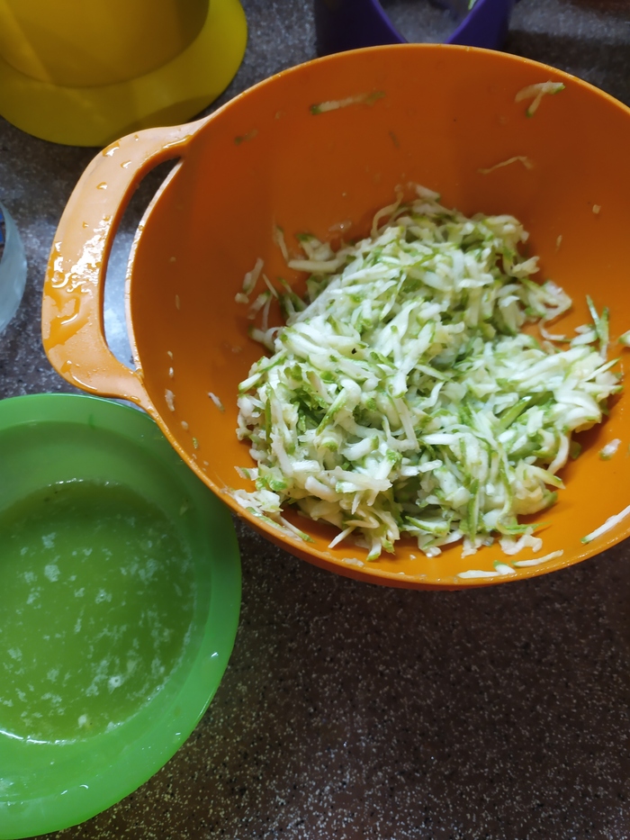 Переложить в миску. Яблоко, 150-180 гр, нарезать кубиками и измельчить в блендере или половинками натереть на мелкой терке.