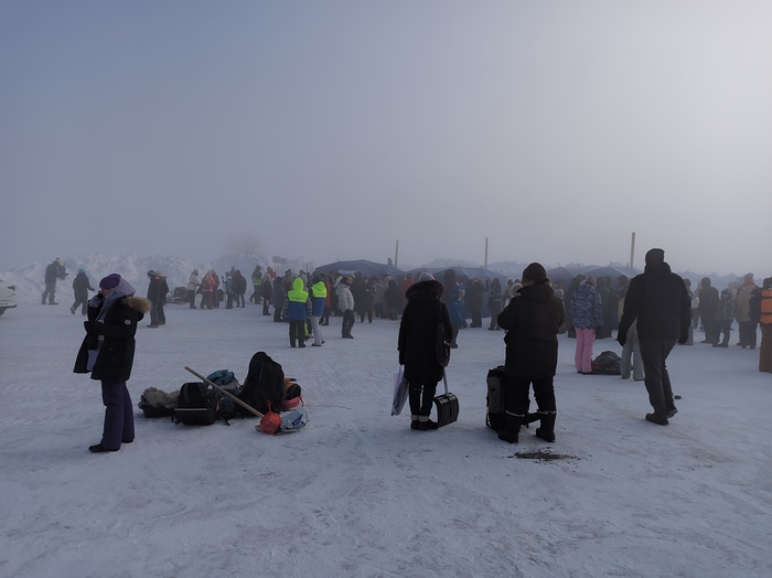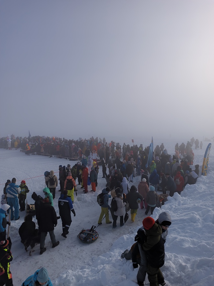 Несмотря на мороз -24 и туман, с утра собралось множество людей на регистрацию команд
