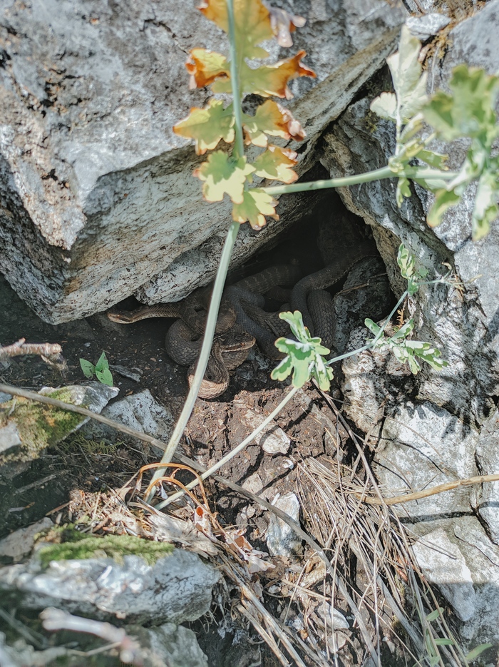 На Соколинном очень много змей. Будьте аккуратней, щитомордник ядовит и агрессивен