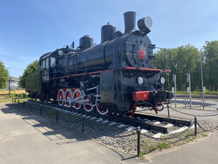 А с другой стороны от вокзала за почтовым складом в 1990 на пьедестал установлен паровоз Эм 728-23. Паровоз построен в 1933 г. Ворошиловградским заводом.