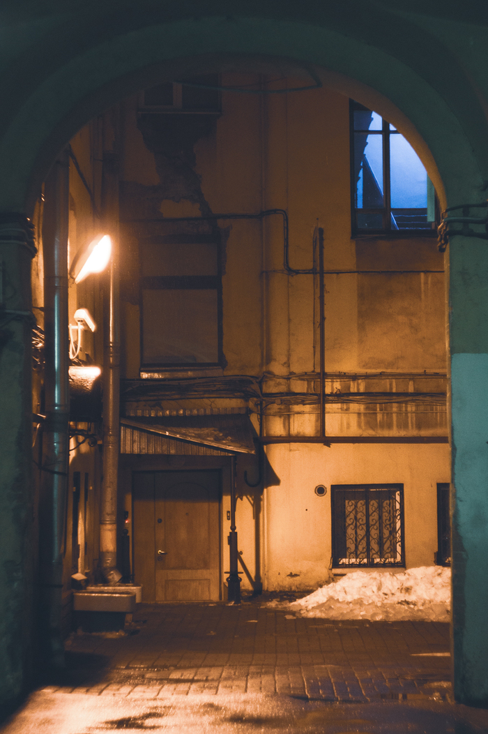 Почему так уютно, когда стоишь, запрокинув голову? А ведь минус два и ветер, и снег залетает под очки, и горло открыто. Что там, в этих сырых, облезлых, неровных стенах. Что там, в этих скрипучих окнах и гулких дворах.
