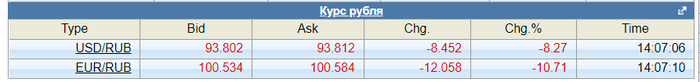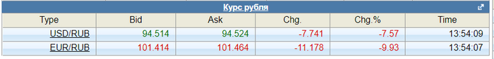 Биржа. Пока писал пост, открылись торги на ММВБ. Курс доллара пошел вниз. Вероятно сегодня увидим уровни 93 - 95. Растет никель, чуть растет золото, чуть падает нефть.