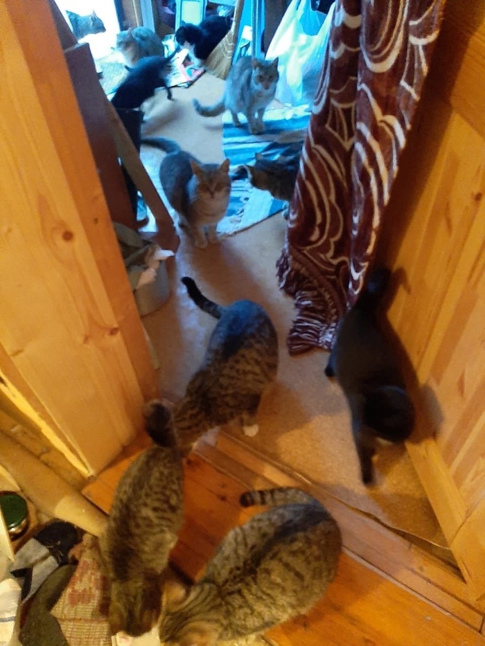 Кто мне хочет написать, что кошки самозародились - не надо, пожалуйста. В 80-х тут был лес и болото и ни одной кошки. Кого не спросишь - никто не виноват и кошек никто не оставлял.