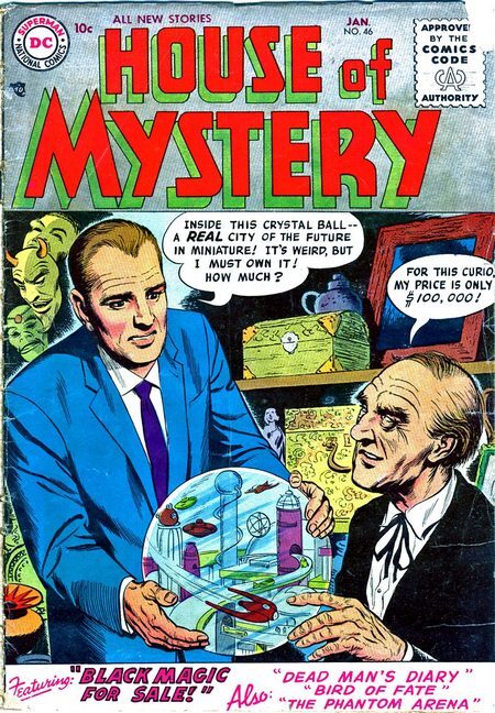 Таинственный привет всем, кто это читает! В пикабушном эфире местный повёрнутый на супергероях, но сегодня я хотел бы начать Погружение в комикс, связанный с супергероями лишь косвенно (хотя супергеройские истории в нём будут в определённый период) – House of Mystery, средоточие мистики и ужасов вселенной DC. Не без нравоучений – в то время положено. Общее направление такое: поначалу будет период мистификации с вкпраплениями мистики и ужасов, затем фантастика, супергероика, а затем вернётся к мистике с большим процентом ужасов.