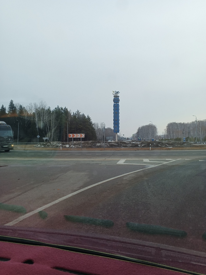 На горизонте показалась стелла. Добрались до Крутинки, скоро Тюкалинск, а за ним Омск.