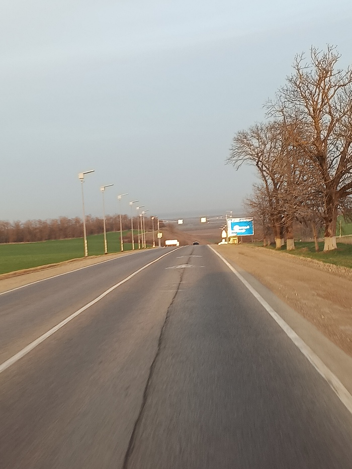 Так мы сначала добрались до Ишима в плотном тумане, не найдя где притулиться приехали в Тушнолобово, где и остались на ночь на стоянке. 19.03.25.ср. 133 день. Выезжаем на трассу в 6.20.