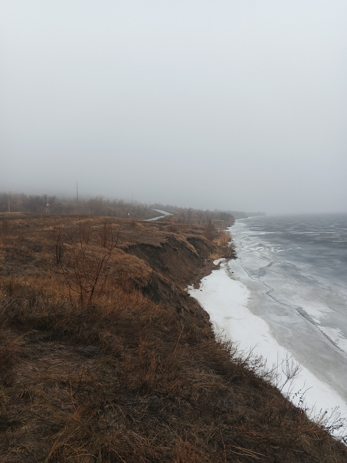 20.03.25.чт. 134 день. Несмотря на обилие снега вокруг нас, ночью было тепло. Время 7.30, выезжаем. Обское ещё во льду, рыбаки снуют между лунками.