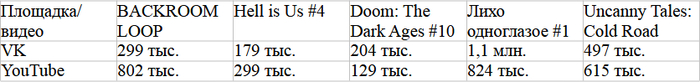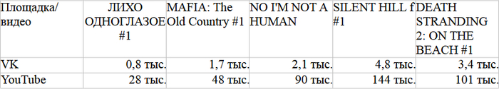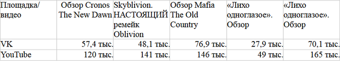 Несмотря на «деградировавший» YouTube, сервис до сих пор остаётся главной площадкой в плане просмотров для (около)игровой видеоиндустрии. Просмотры на нём выше в 2-3 раза, чем в том же VK, а иногда и больше. Единственное исключение — Дмитрий Куплинов, у которого заключено соглашение с VK. Но даже там нет явного превосходства отечественного сервиса.