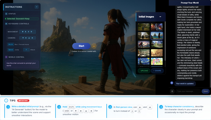 Называется он Mirage 2 и конкурентом его можно назвать с большой натяжкой, хотя назначение Mirage 2 точно такое же, как и у Google Genie 3 — формирование интерактивных 3D-миров. Увы, у Dynamics Lab получился скорее демонстратор технологии, чем реально работающее решение.