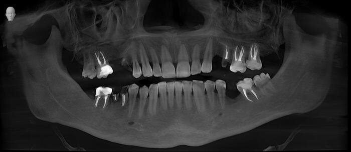 В связи с тем, что Руслан приезжает из другого города, первым делом я провел удаление всех зубов, которые невозможно было сохранить. Потому как часики тикают, а заживление после удаления занимает около 2 - 3 месяцев.