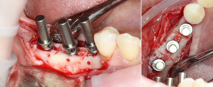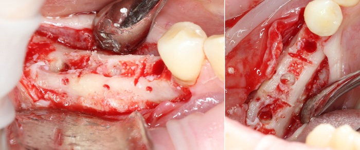 На верхней челюсти было дополнительно удалено два боковых резца с одномоментной установкой имплантатов, так же они были установлены в области четверок и шестых зубов. Дополнительно было проведено наращивание костной ткани - двусторонний синус - лифтинг. О том, что это такое, можно почитать ТУТ и ТУТ.