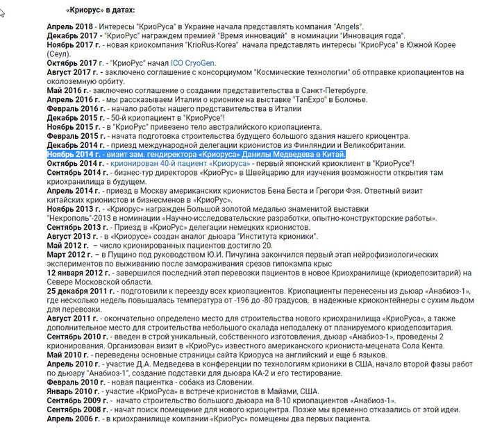 Также из раздела "Криорус в датах" мы узнаём, что Данила Медведев в 2014 году был зам.гендиректора