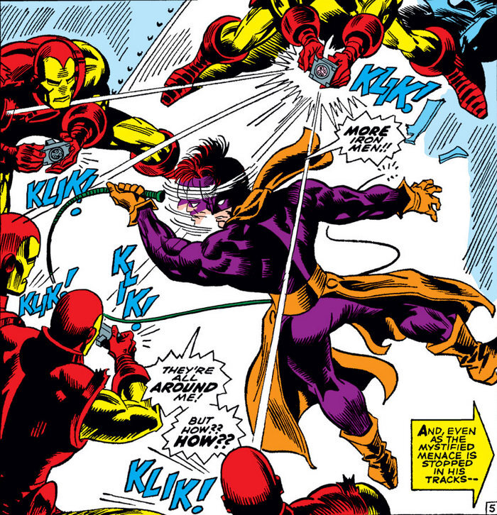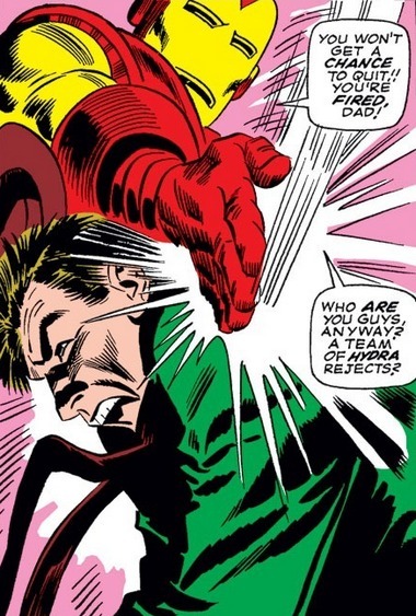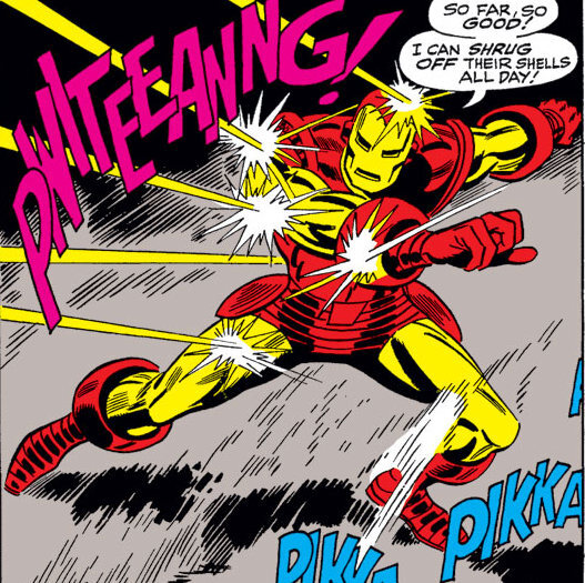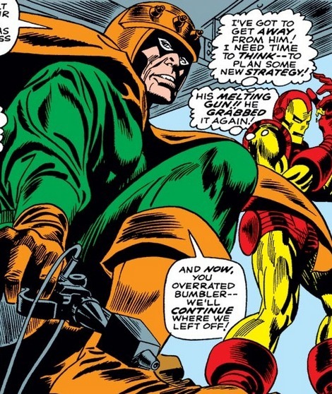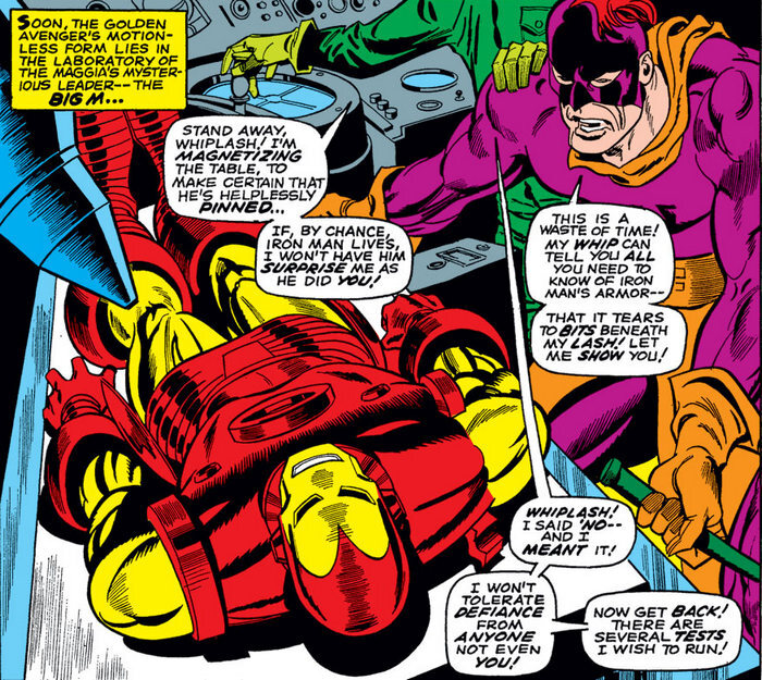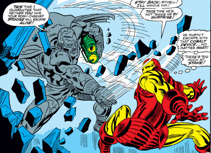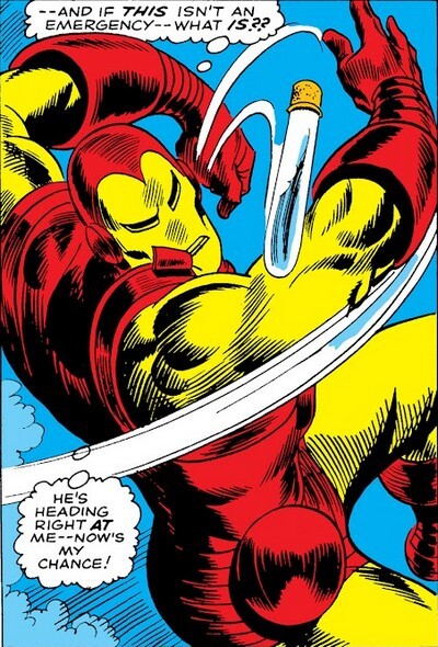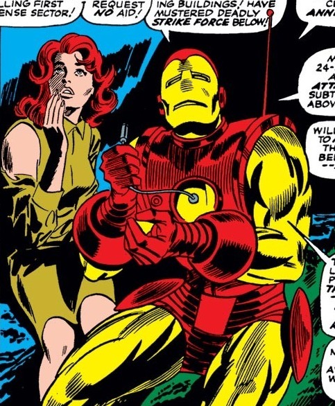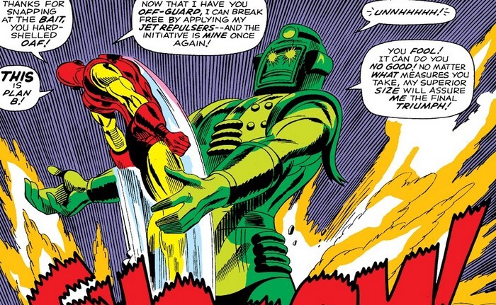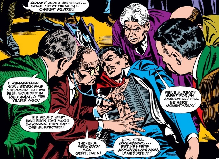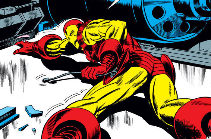 Слышите тяжёлую металлическую поступь и гитарные риффы Black Sabbath? Нет? Ну вообразите, что вы в самом деле. Ведь впереди комикс Tales of Suspense #39, от Стэна Ли, Ларри Либера и Дона Хека. Историй несколько, как и раньше, но я всё же остановлюсь на одной, главной. Тони Старк, гениальный инженер и богач, презентует армии своё новое изобретение: микротранзистор, многократно увеличивающий силу любого магнита. Используя микротранзистор и микромагнит, можно толстую металлическую дверь смять, как пластилин! Это изобретение наверняка окажется невероятно полезным для войны во Вьетнаме! И отправляется Тони Старк во Вьетнам, где снабжает американских солдат оружием, усовершенствованным транзисторами. Они позволяют сделать миномёты мощнее, и при этом легче! Увы, сам Тони задевает растяжку. Гремит взрыв! Приходит в себя Тони в плену у местечкового тирана, Вон-Чу. Диагноз неутешительный: много шрапнели вокруг сердца, Тони протянет максимум ещё две недели, потом шрапнель доберётся до сердца и убьёт его. Вон-Чу решает этим воспользоваться и приказывает Тони накрафтить много оружия. В ассистенты Тони выдают пожилого профессора Иньсена. И это было ключевой ошибкой Вон-Чу...