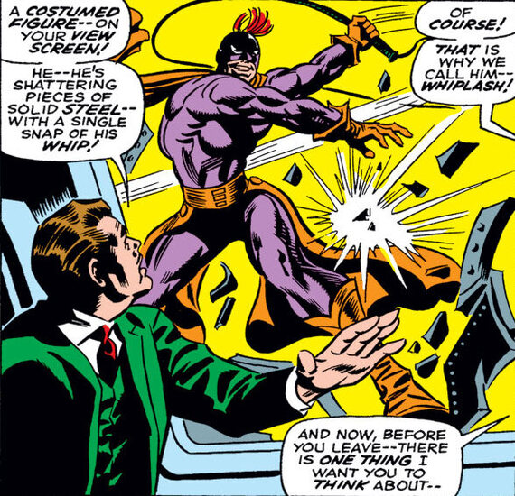 А ещё надо заглянуть в комикс Tales of Suspense #35. Время действия – 2065 год (он, кстати, уже ближе, чем 1962), и в центре внимания 45-летний пилот, обиженный на то, что его увольняют из космических пилотов (по возрасту). Кроме того, он ретроград – предпочитает управлять кораблём сам, а ведь сейчас кораблями управляют компьютеры, современным пилотам не нужно напрягаться. Ну, пилот задумывает офигенный план. Вскоре в городе появляется таинственный инопланетянин Заркорр и сообщает: он представитель галактической федерации, и его задача – устроить людям проверку, достойны ли они в космос выходить. По итогам проверки он либо оставит всё, как есть, либо установит жёсткий карантин с полным запретом выхода в космос, либо уничтожит Землю. Проверка заключается в том, что избранный пилот должен будет долететь до Марса на звездолёте без электронных элементов управления, чисто по старинке. Молодые пилоты не умеют, но пилот-ретроград вызывается добровольцем и справляется с миссией на ура. Заркорр признаёт, что люди имеют право выходить в космос. Все довольны. Никто не догадался, что этим Заркорром был пилот-ретроград в кастомном костюме и маске.