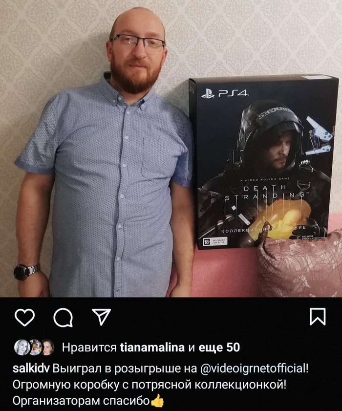 Но царь-выигрыш случился у меня однажды. К сожалению не квартира и не машина, но тоже хорошая вещь. Один, кажется питерский, магазин компьютерных игр и аксессуаров разыгрывал коллекционку игры Death stranding. Кодзима гений, вся херня. В розыгрыше участвовало несколько тысяч человек. Я мимоходом сделал лайк/репост и забыл о нём совсем. Через какое-то время в личку приходит сообщение от магазина о моём выигрыше, я, конечно, слегка прихуел) Нюанс ещё был в том, что у меня и плойки-то не было.