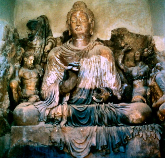 Пример синкретизма, называемого греко-буддизмом, в месте Tapa Shotor, где Геракл, Тихе и Александр Великий были защитниками Будды.
