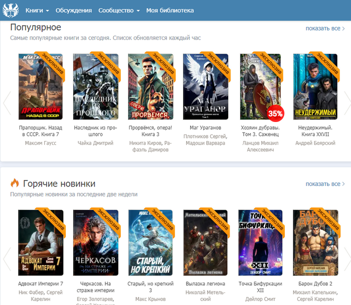 Простой пример - вот скриншот главной страницы литнета, сделанный прямо сегодня.
