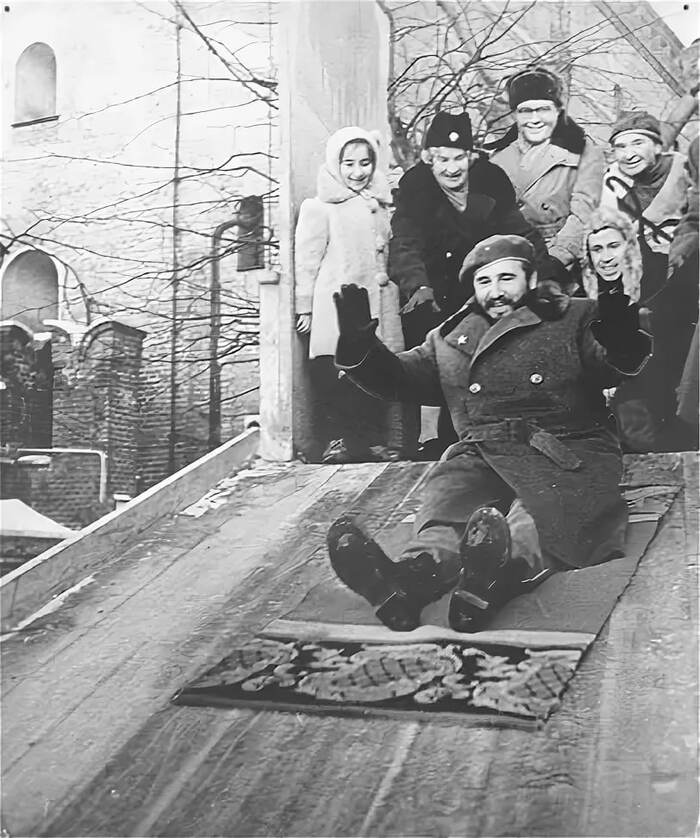 19. Катание с горки в сквере у Городской усадьбы Нарышкиных (дом Цурикова) на Гоголевском бульваре в Москве. 1996 год.