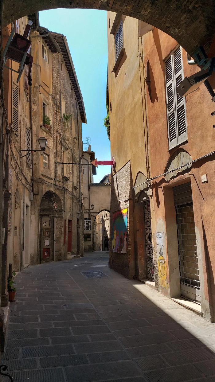 Продвигаясь по узким улицам вдоль высоких домов , создается впечатление, что ты находишься в замке, окружённом крепостными стенами. Я большой фанат истории средневековой Европы и прочитал об этом времени десятки книг и статей , посмотрел сотни исторических роликов и фильмов. Гуляя по сиенским улицам, я буквально телом ощущал дух того времени, визуализировал глазами сражения, которые могли проходить на улицах подобных городов. Просто посмотрите на эту красоту!