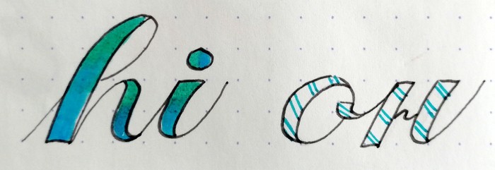 Слышала ещё такое объяснение, что на завитках рука не касается бумаги вообще, скользит в воздухе - но многие другие каллиграфы не советуют использовать такую технику, т.к. рука сильно устанет и точность будет меньше.