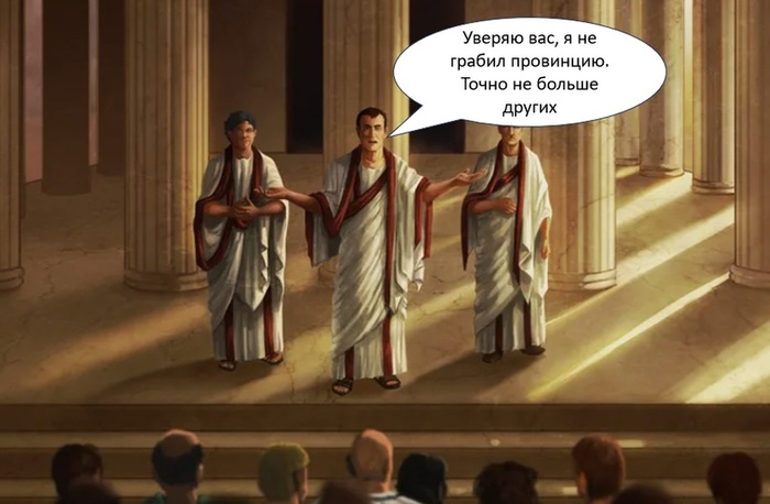 Посидел под этаким домашним арестом Гай Юлий всего сутки. На следующий день на форуме перед домом Великого понтифика, где Цезарь и обитал, собралась огромная толпа недовольных решением сената граждан и начала митинг. Дело очень сильно пахло городским бунтом, и Цезарь, будучи не дураком и отлично понимая, что сейчас в Италии слишком много военачальников с армиями, которые могут в случае чего устроить в Риме чистки, не воспользовался шансом. Вместо этого он призвал толпу разойтись по домам, дав сенату шанс как-то уладить ситуацию. В сенате тоже не клинические дурни сидели и отлично понимали, что если не пойти на уступки, толпа просто снова соберется завтра, и послезавтра… И то, что в Италии сейчас есть силы, которые могли бы подавить бунт, не отменяет того простого факта, что если он случится, то до конца этой истории скорее всего доживут далеко не все. Поэтому разум взял пока что верх, и Цезарю вернули его полномочия. Сами видите, насколько неустойчивой была ситуация в Риме.
