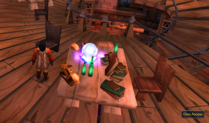 На самом верху оказалась большая лаборатория, где с дюжину магов (и людей, и гномов) занимались каждый своим делом. Тут были и алхимические столы, какие-то странные предметы и артефакты, а также некий шар. Оул стоял и рассматривал этот шар, когда к нему сзади подошла девушка-маг и загадочно протянула "Эээто ооооко Азооооры." Как будто бы это поясняло хоть что-то про шар, про Азору или ее башню.