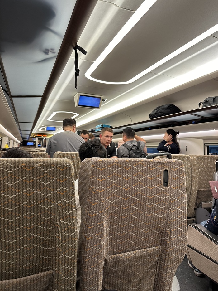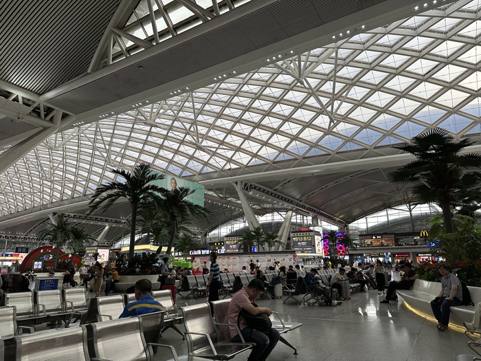На поезде мы отправились в Гонконг. Так как официально мы покидали материковый Китай, я ожидала, что мы будем проходить пограничный контроль до посадки на поезд. Но в итоге проходили уже в Гонконге. Поэтому мы два часа просидели на вокзале, так как приехали заранее.