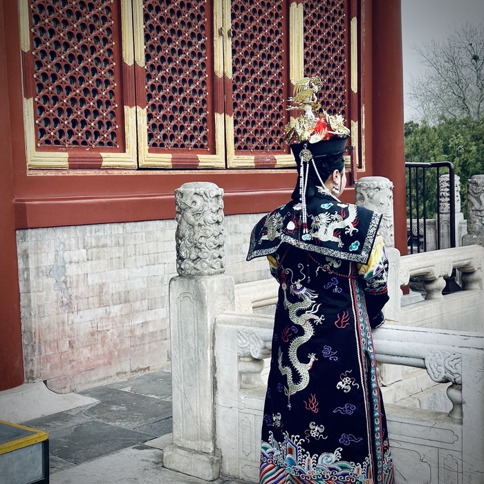 На востоке в серой плитке среди красных стен и строгой планировки — это храм Байлинь (Bólín sì), один из «Восьми великих храмов» столицы во времена династий Юань, Мин и Цин.