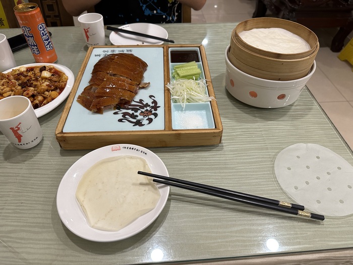 Из блюд мне очень понравилась пекинская утка. Кусочки утки заворачивавши себе с овощами в мини-лаваш. Получается мини-шаурма.
