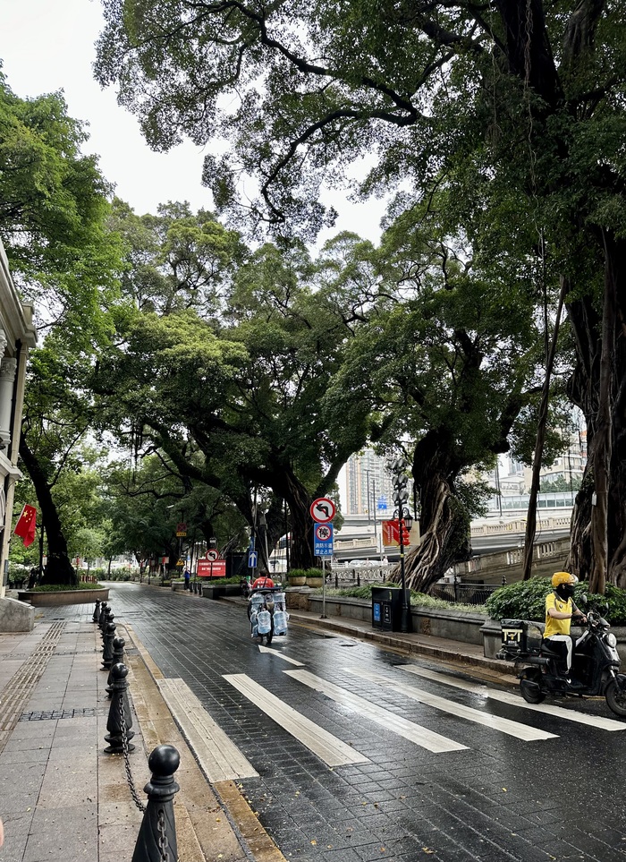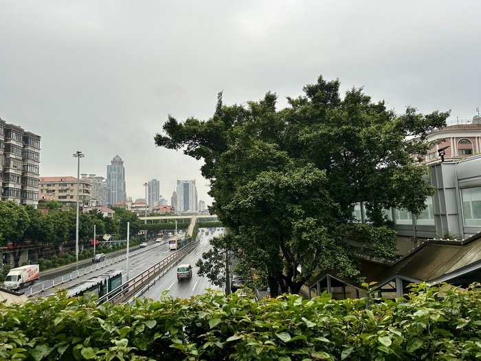 В Гуанчжоу мы застали самый конец разразившейся бури с градом и ливнем. Все улицы были подтоплены и непрерывно шёл дождь.