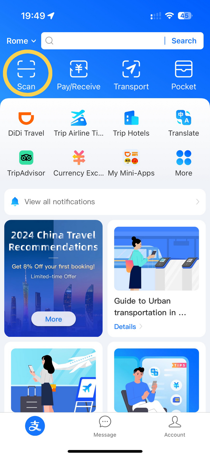 Естественно изначально язык китайский. Но именно у Алипея есть преимущество, почему его стоит использовать и просто так и как агрегатор других приложений - там встроенный переводчик!