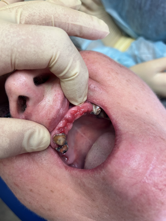 Сняли мы с пациенткой верхний протез с подобным «седлом». Вот, что уже 15 лет живет под ним. Вычистить все это нереально при всем желании даже у врача в кресле.