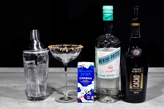5. Коктейльный бокал - 1шт (его можно заранее охладить закинув в него лед, или засунув его в морозилку, но это опционально);