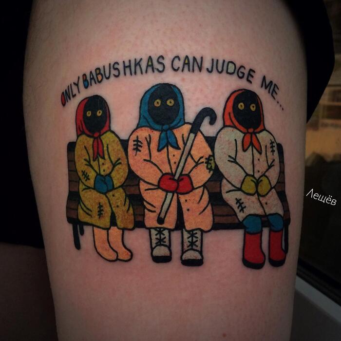 У модников от Нью-Йорка до Токио русские слова на одежде стали популярными благодаря Гоше Рубчинскому и моде на русских дизайнеров. Футболки и лонгсливы с надписями «Рассвет», «Спорт», «Молодежь» и другие можно увидеть в стрит-фэшн кадрах. А теперь и в тату-трендах среди китайских иероглифов, арабской вязи и иврите, латыни и английским, все чаще можно увидеть кириллицу. Частенько такие татуировки просто взрывают мозг…