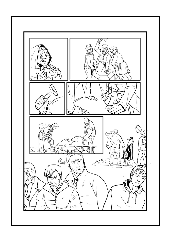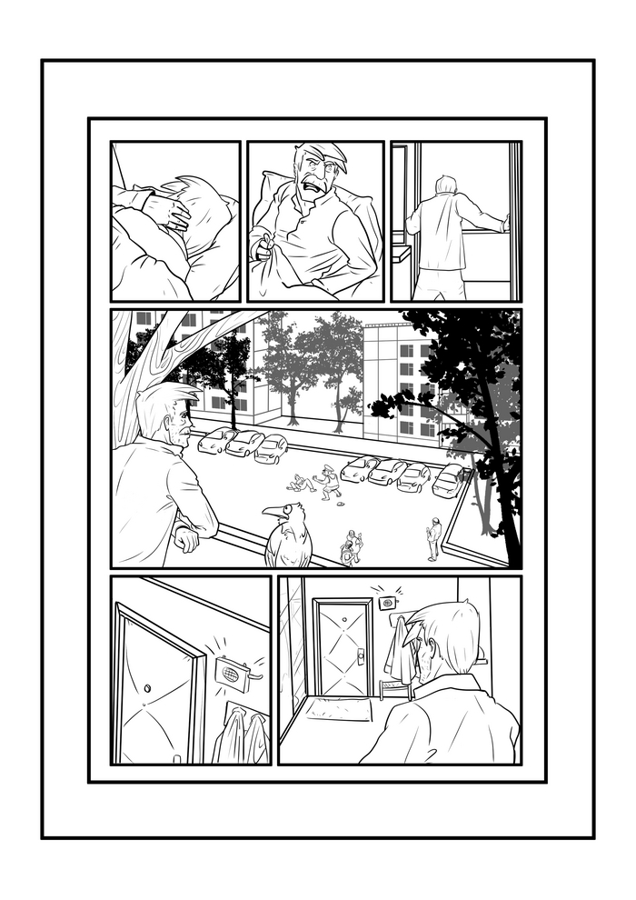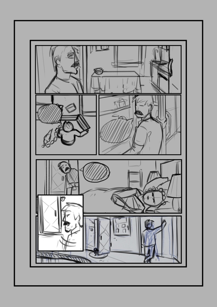 Т.е уже в процессе снова потребовалось вмешательство сценариста в лице меня, а кроме того комикс снова вырос, добавились еще две страницы.