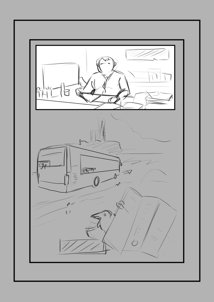 Буквально за один вечер я написал сценарий по рассказу, кстати - тоже, как оказалось, задача не из легких, отправил Анне, она ознакомилась с самим рассказом, со сценарием, ей понравилось и, дабы оценить объем работы, художник сделала раскадровку: