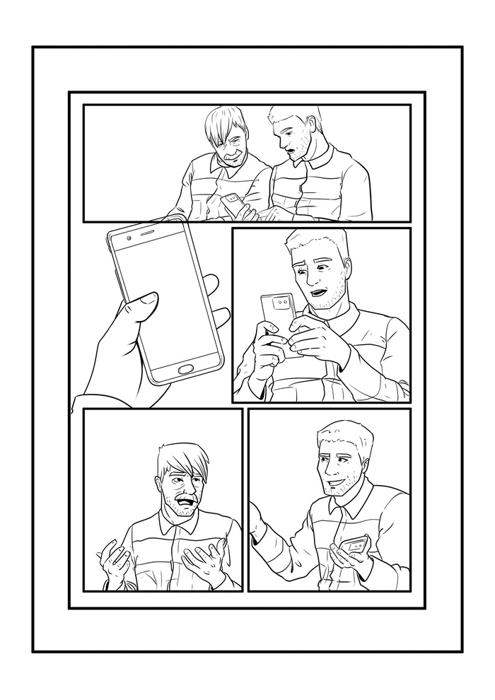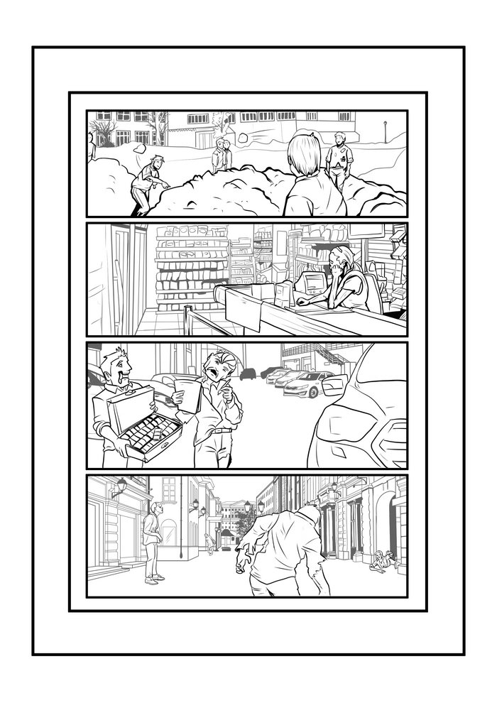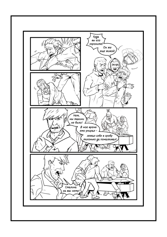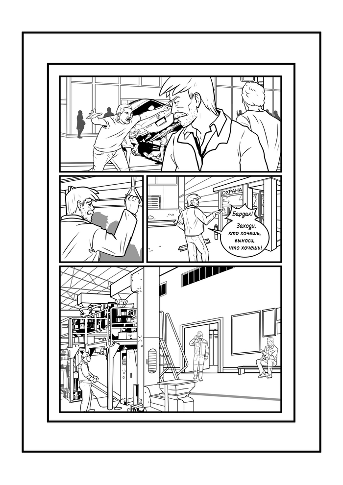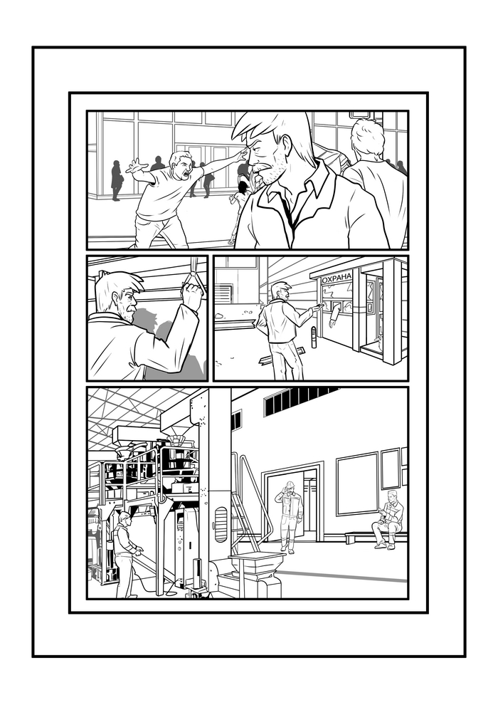 Следующий этап создания комикса - лайн. Т.е. чистовая отрисовка пока еще черно-белого комикса на основе ранее утвержденных скетчей.
