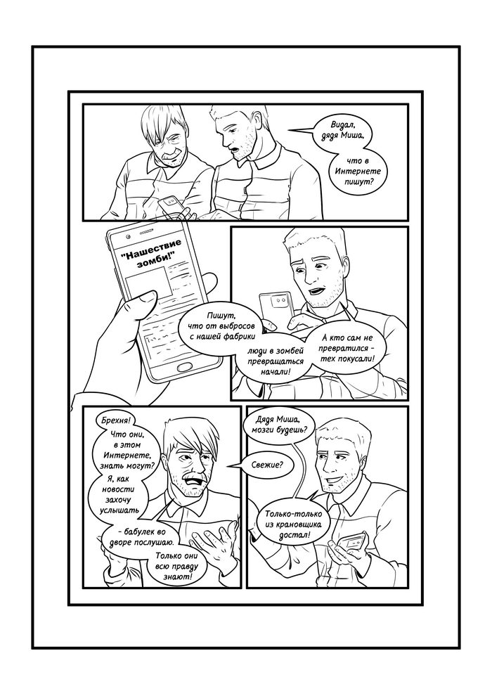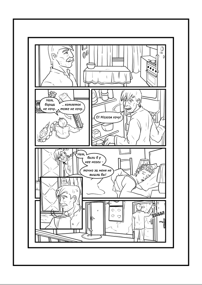 Комикс по рассказу "Мозги...", в линиях