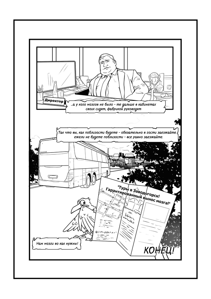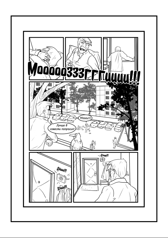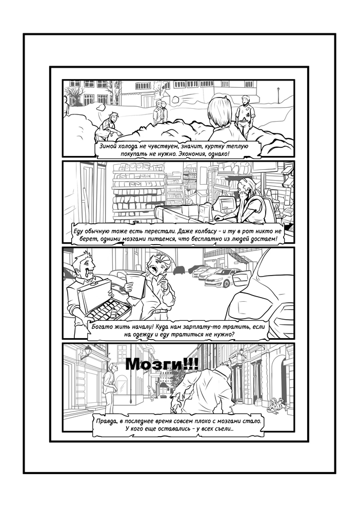 Пока я болею, нет юридических историй, нет рассказов - решил опубликовать вариант комикса "Мозги..." все еще черно-белый, но уже с текстом. Вроде как теперь все понятно.