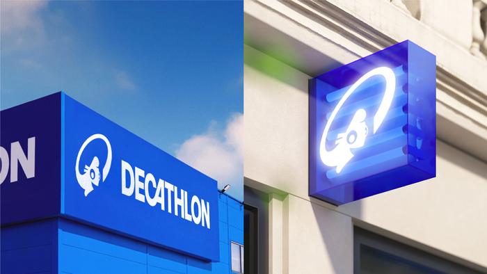 В фирменном стиле используется цвет фуксия, он же присутствует в оформлении залов — неоновые фиолетовые ставни в стойках и стенах.
