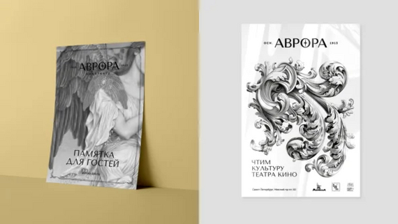 Мы сохранили в дизайне всю помпезность и историческую значимость кинотеатра, только упаковали в минималистичном стиле. В знаке отразили богиню рассвета — Аврору, которая несет луч «кино-света». Теперь логотип лучше транслирует деятельность компании и перекликается с названием, хоть и изначально связи с богиней у кинотеатра не было.