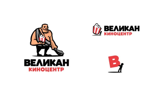 Дизайнеры создали персонажа-великана, так как кинотеатр имеет достаточно громкое название. Маскот выполнен в мультипликационном формате, а в руках у него попкорн — атрибут кинотеатра. Нарисовав иллюстрацию мы сделали логотип более дружелюбным и семейным.