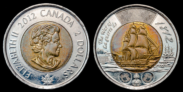 Монета посвещенна 200-летию войны 1812г.,точнее выяснению отношений между Великобританией в лице Канады и Соединенных Штатов Америки..Британские суда осуществляли блокаду крупнейших американских портов для ограничения американской торговли, блокировали французский флот,использовались для защиты своих торговых судов в Северной Америке и Карибском бассейне от (как правило, французских) каперов .