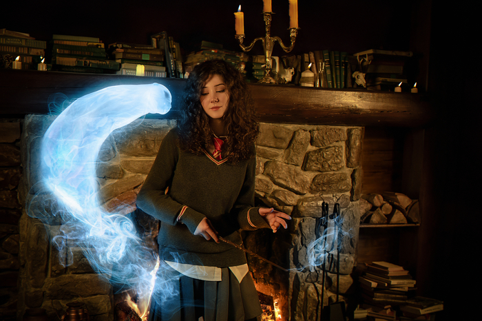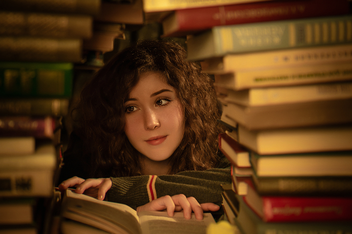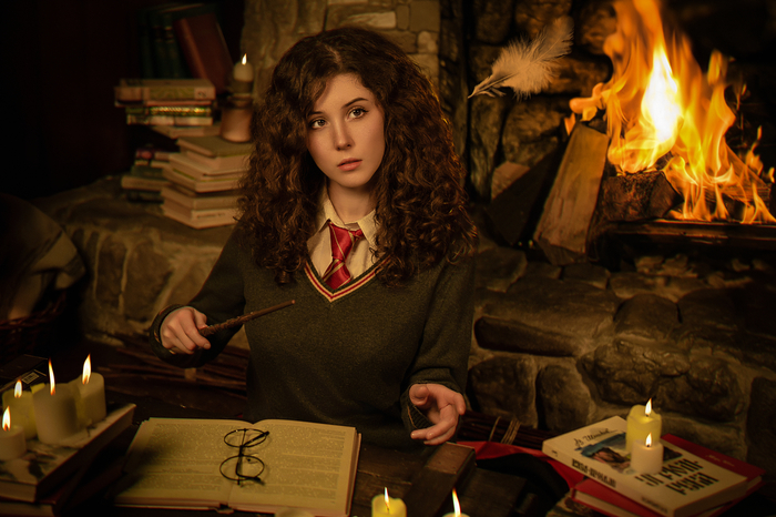 📚 Гермиона — книжный уют Гриффиндора 🕯️Я давно хотела сделать косплей, вдохновлённый книгами. Что-то не слишком парадное, а наоборот — тихое, тёплое, как вечер в комнате факультета, когда за окном дождь, а ты листаешь «Историю магии» и допиваешь остывший чай. Этот образ Гермионы именно про это состояние. Не сцена из фильма, не стандартное платье с бала — а моя интерпретация момента между приключениями. Это не парик, я не пыталась быть копией — я старалась передать атмосферу, которую сама чувствую.