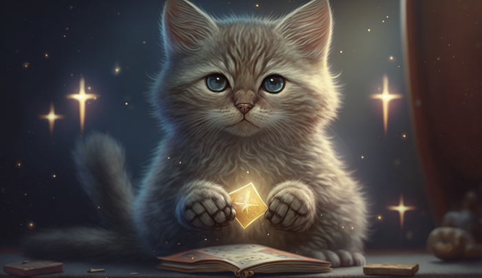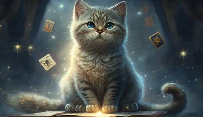 промпт для Midjourney cute cat tarot card star 4k --ar 16:9/ --ar 6:19